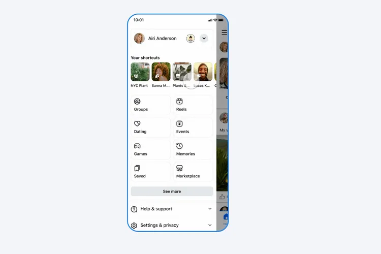 Meta juga melakukan penyederhanaan di bagian menu, tampilan komentar, dan sejumlah elemen antarmuka lainnya. Tab seperti Reels, Marketplace, dan Profil kini ditata ulang dalam format grid dan dipindahkan ke pojok kiri atas, menggantikan posisi sebelumnya di kanan bawah.