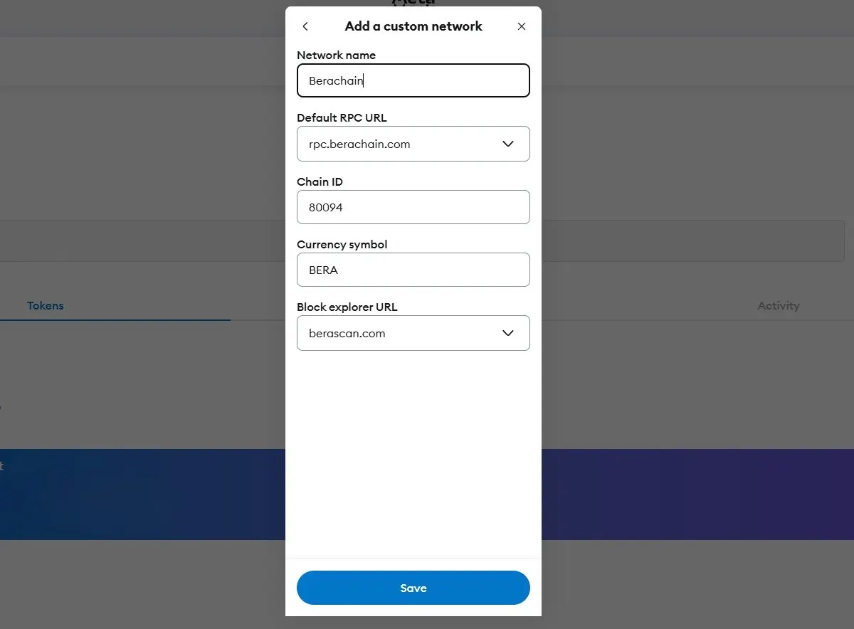 Langkah 2: Isi Dompet dengan Token $BERA untuk Biaya Gas