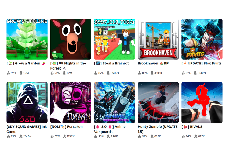 Per Agustus 2025, ada 10 map Roblox terpopuler yang mendominasi daftar game dengan jumlah pemain online terbanyak (concurrent players). Bahkan, map nomor satu berhasil mencatatkan hampir 2 juta pemain online secara bersamaan, sebuah rekor yang mengalahkan banyak game besar lainnya.