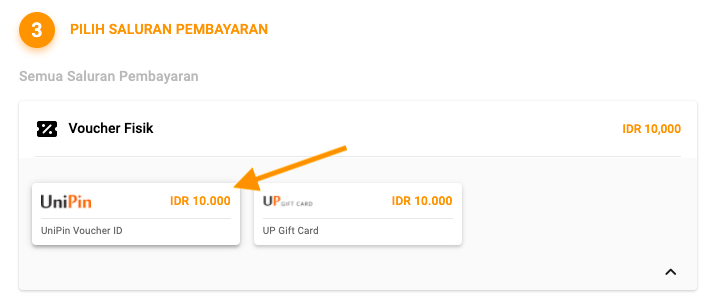 3. Di bagian metode pembayaran, tinggal pilih voucher fisik, lalu pilih unipin voucher.