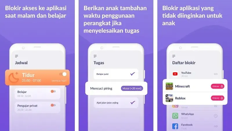 Untuk membantu menghadapi tantangan tersebut, aplikasi parental control dirancang untuk mengatur dan memantau aktivitas online anak, mulai dari membatasi waktu penggunaan gadget, memblokir konten tertentu, hingga melacak lokasi perangkat. Dengan fitur-fitur ini, orang tua dapat menciptakan lingkungan digital yang lebih aman dan terkendali, sekaligus membangun kebiasaan penggunaan gadget yang sehat bagi anak.