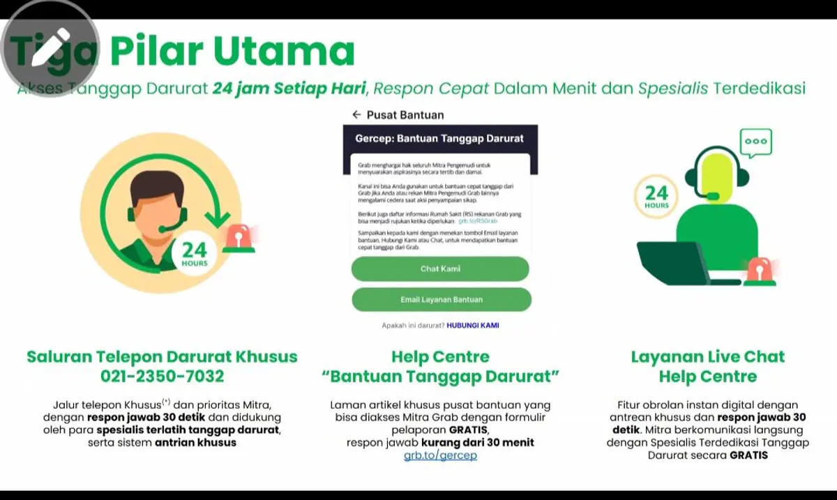 Dengan sistem ini, setiap mitra bisa langsung mendapat bantuan, pendampingan, dan kepastian dukungan dari Grab kapan pun dibutuhkan.